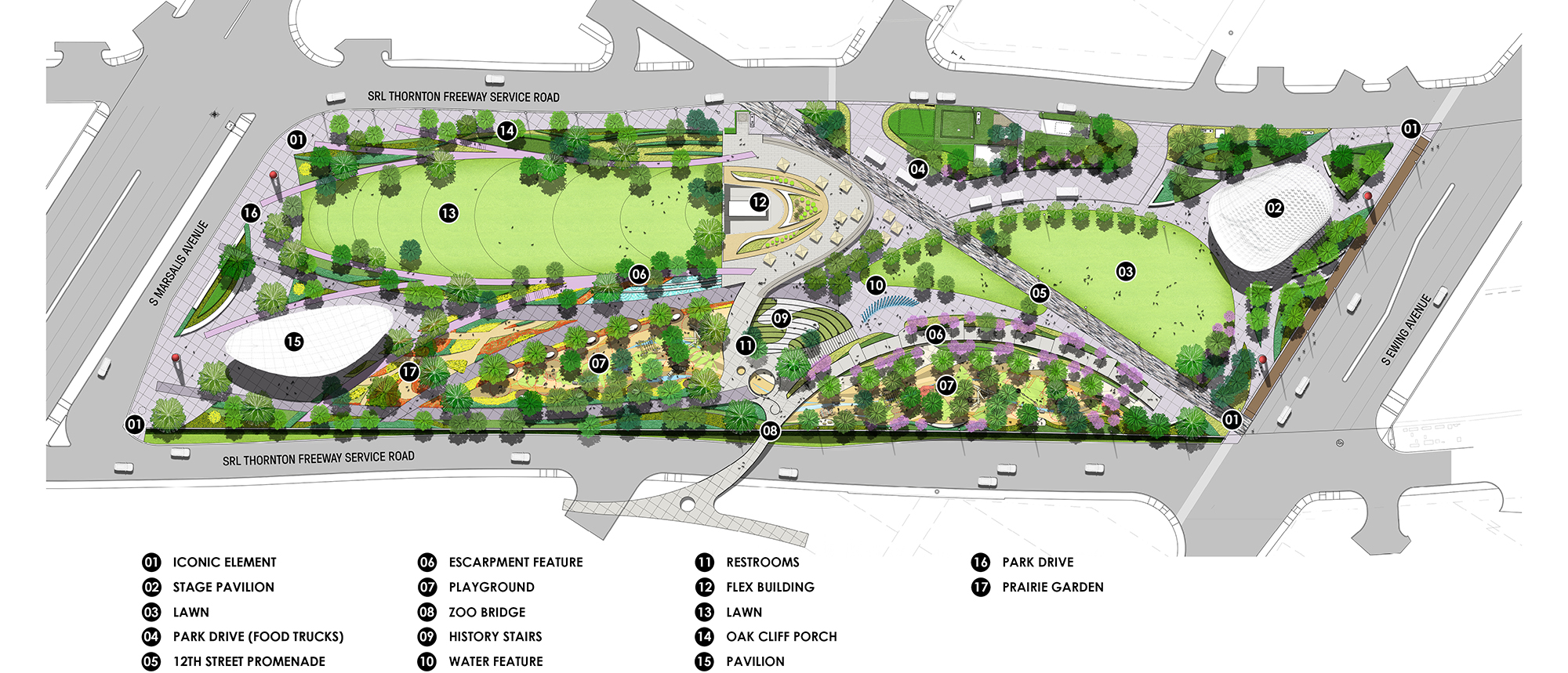 In 2017, the Texas Department of Transportation moved forward with plans to widen I-35, a construction schedule that included adding a cap park in Oak Cliff where neighborhood streets and homes had once stood. Though TxDOT built the deck with funding from the North Central Texas Council of Governments and bond money from the city of Dallas, the Southern Gateway Public Green Foundation formed with contributions from private and philanthropic donors to pay for the initial $35 million park construction and eventual park maintenance.